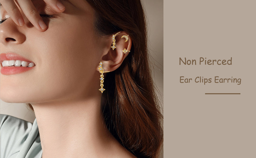 Moon and star Ear Clip Are Simple and Fashionable, Smooth and Lightweight,Safe and Durable, Size adjustable, Easy to Wear and take off, Suitable for