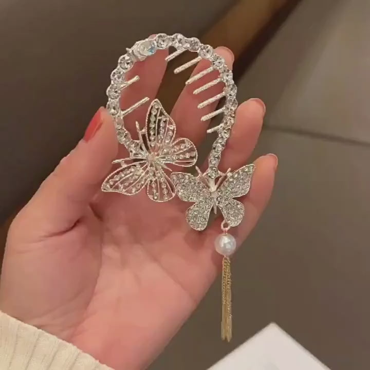 1pc Zinc Alloy New Rhinestone Butterfly Tassel Hair Clip Hair Accessories, Ideal choice for Gifts