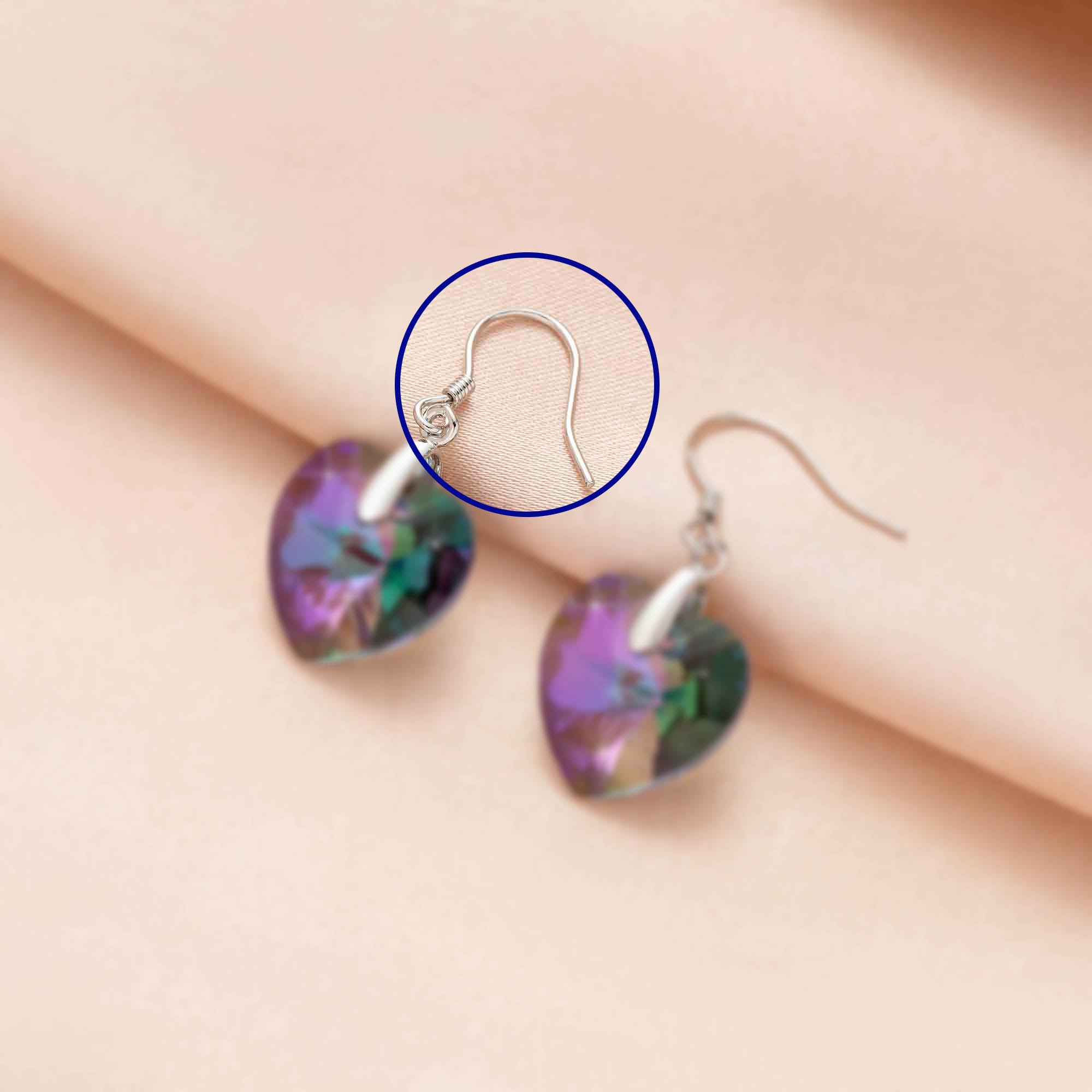 Anting Menjuntai Tetesan Hati Kristal Austria untuk Wanita Anting Hypoallergenic Kait Perak Sterling 925