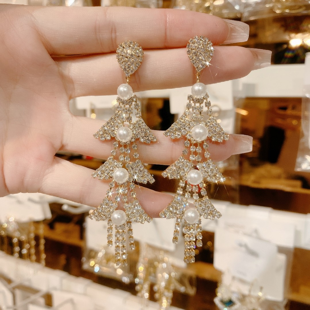 Sparkly Pearl Tassel Long Dangle Earrings for Women Jewelry Gifts