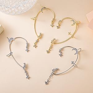 Moon and star Ear Clip Are Simple and Fashionable, Smooth and Lightweight,Safe and Durable, Size adjustable, Easy to Wear and take off, Suitable for