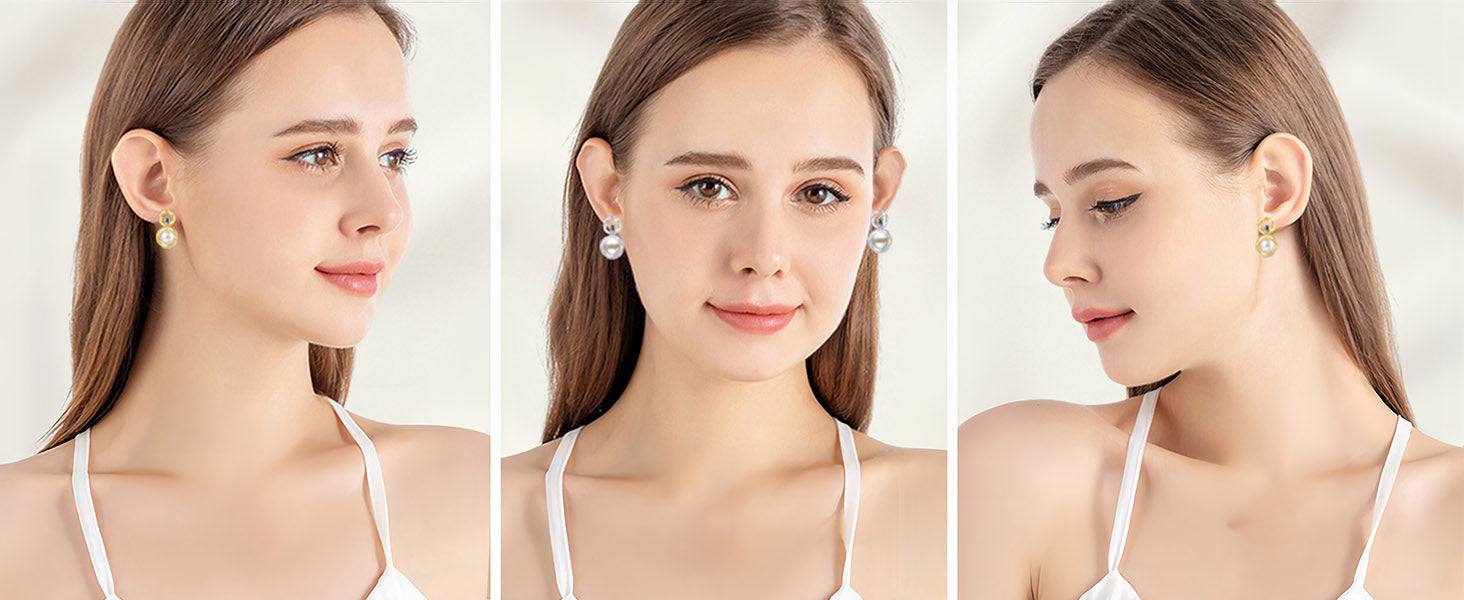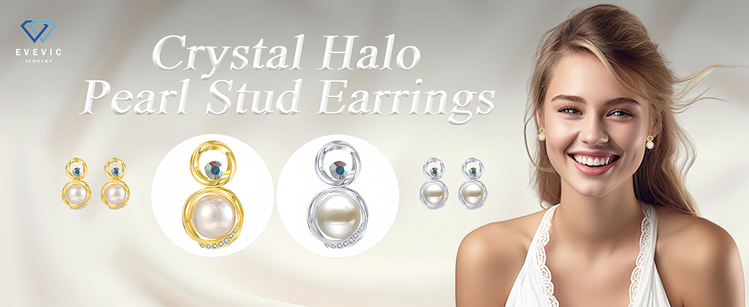 【VERSATILE and TRENDY】— Our elegant Austrian Crystal Halo Stud Pearl Earrings for Women are crafted with timeless Freshwater Pearls, making them exquisite and chic. They can effortlessly be paired with any outfit, from casual to formal. These earrings are a romantic and classic addition to your jewelry collection, suitable for both daily wear and special occasions such as weddings, anniversaries, graduations, parties, balls, engagements, and more.