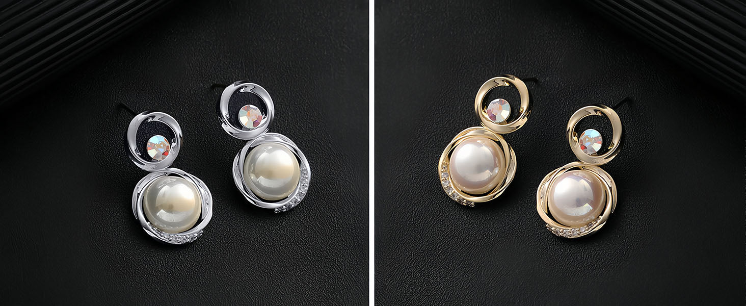 Yes, you can certainly pair our Austrian Crystal Pearl Dangle Earrings with other gold, white gold, or sterling silver jewelry, such as rings and bracelets. It adds an extra touch of glamour to any ensemble.