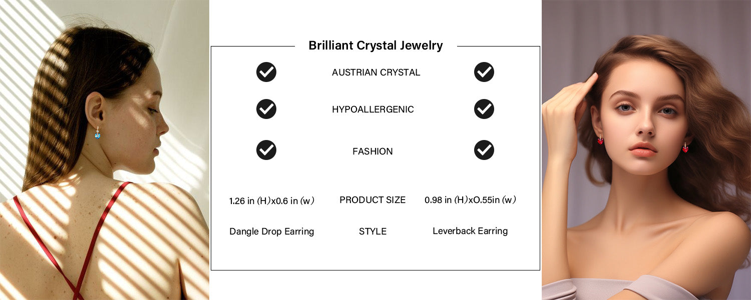 【HYPOALLERGENIC AND HARM-FREE】— These Austrian Crystal Dangle Earrings are made of eco-friendly alloy with 14K white gold plating, ensuring hypoallergenic and nickel-free properties. The earrings feature selected Austrian Crystals with excellent diamond-cutting. They have passed the Swiss SGS Inspection Standard and are free from harmful ingredients, making them safe and comfortable to wear without causing allergies.