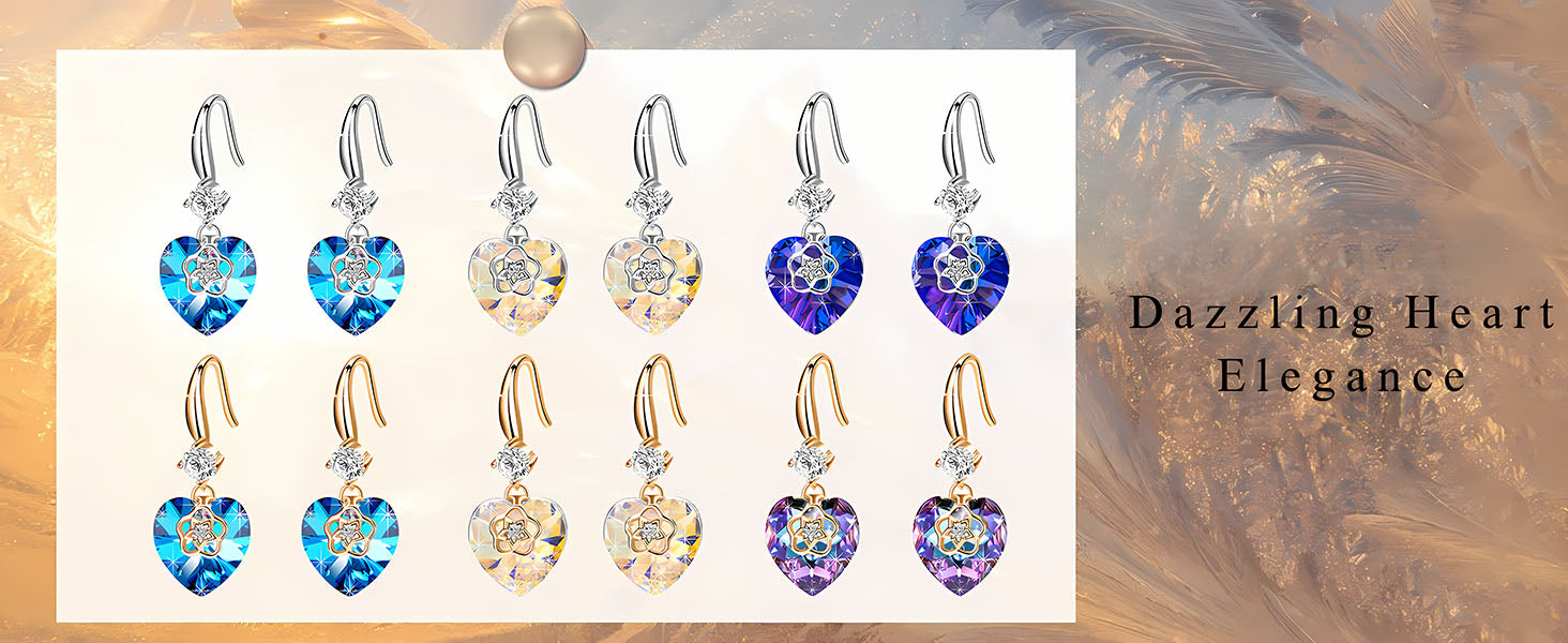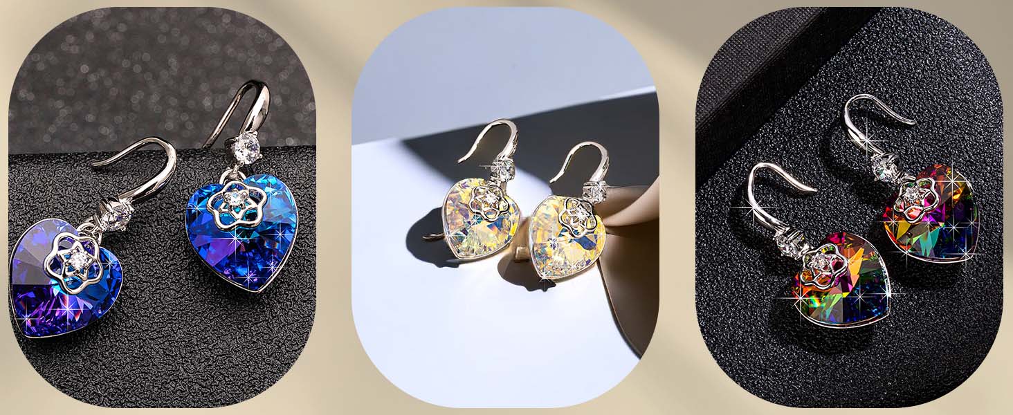 Heart crystal earrings are perfect for any outfit, whether formal or casual. Wear it with dresses, jeans or summer suit to add sparkle and elegance to your look.