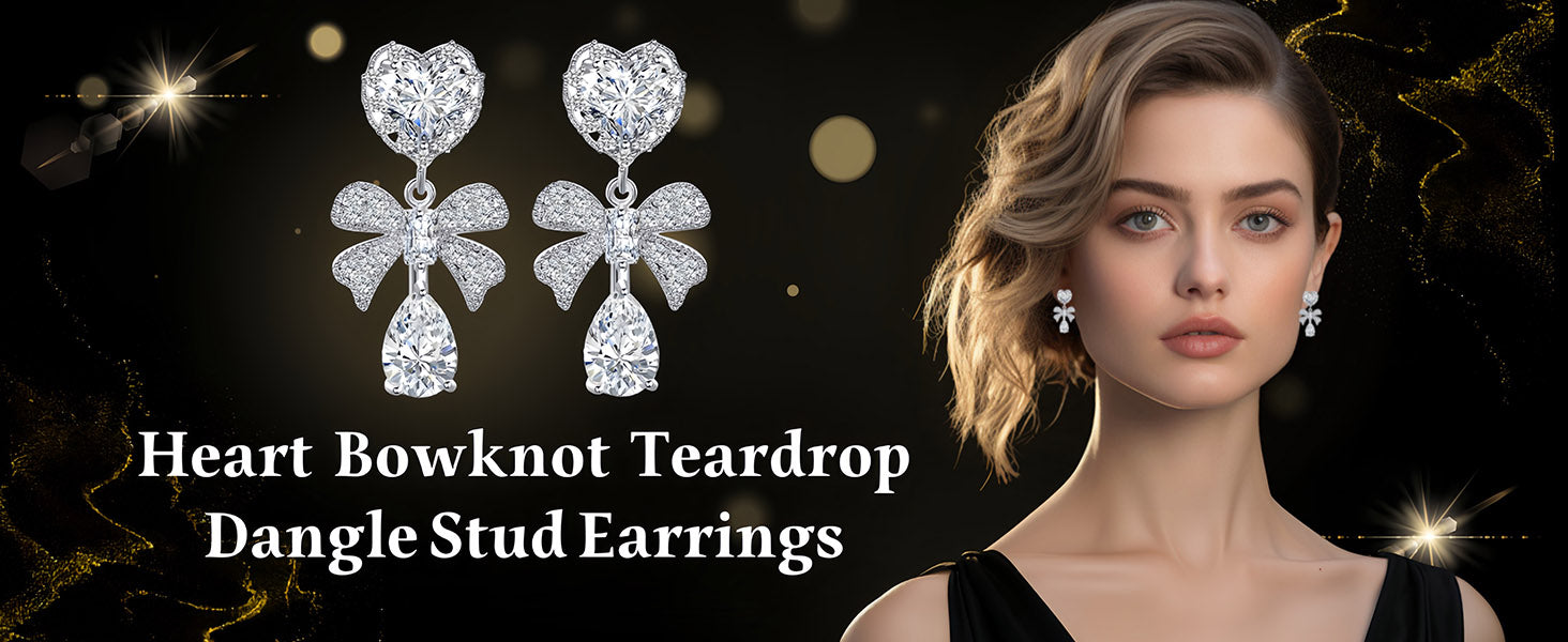 Experience the Brilliance and Grace of Heart Teardrop Bowknot Dangle Earrings!