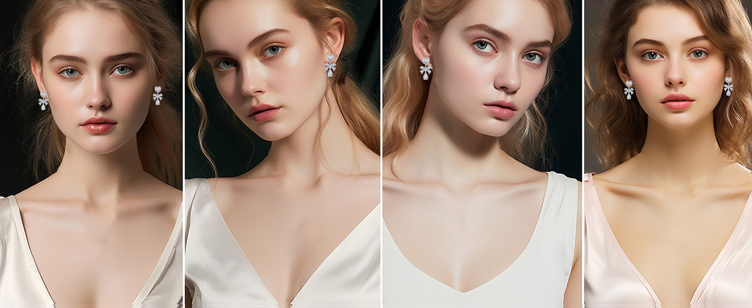【PREMIUM QUALITY】—Delicate Austrian Crystal Heart Bowknot Teardrop Dangle Earrings are meticulously crafted with well-polished 14K White Gold Plated Brass,925 Sterling Silver Post Pin Studs Earrings,Hypoallergenic and Nickel free,Gentle to your skin.Allowing for all-day wearing and ensuring durability and resistance to oxidation.