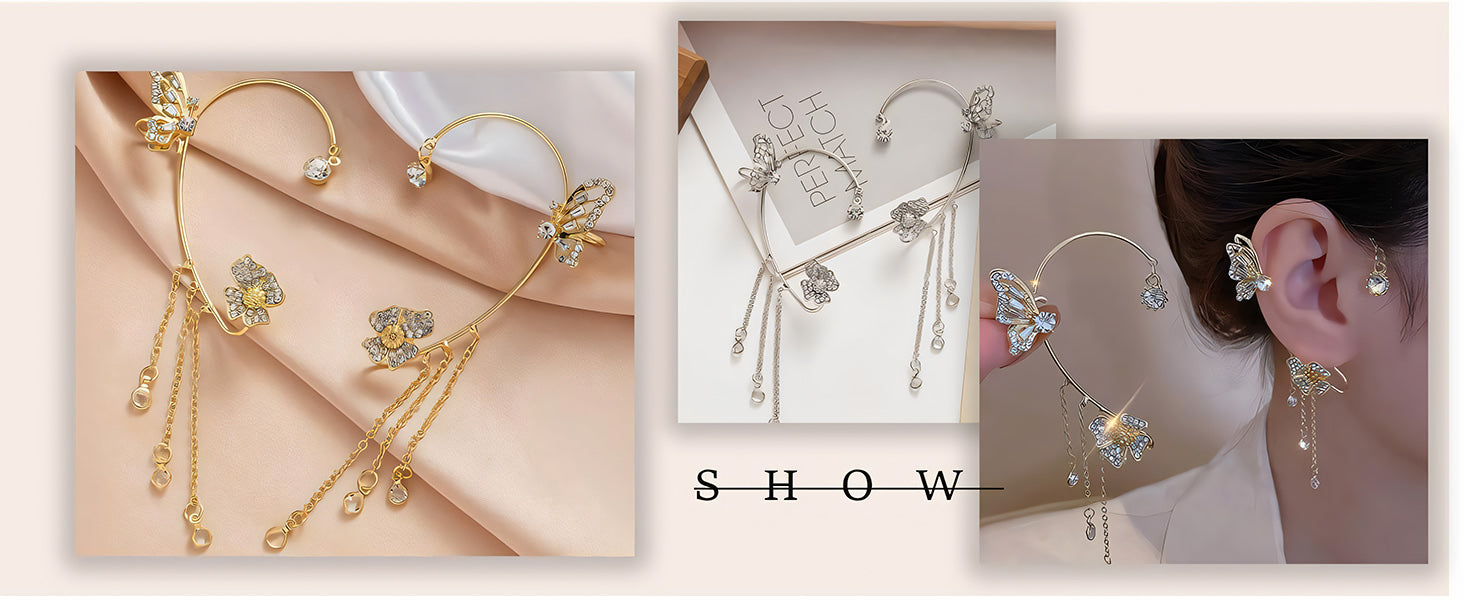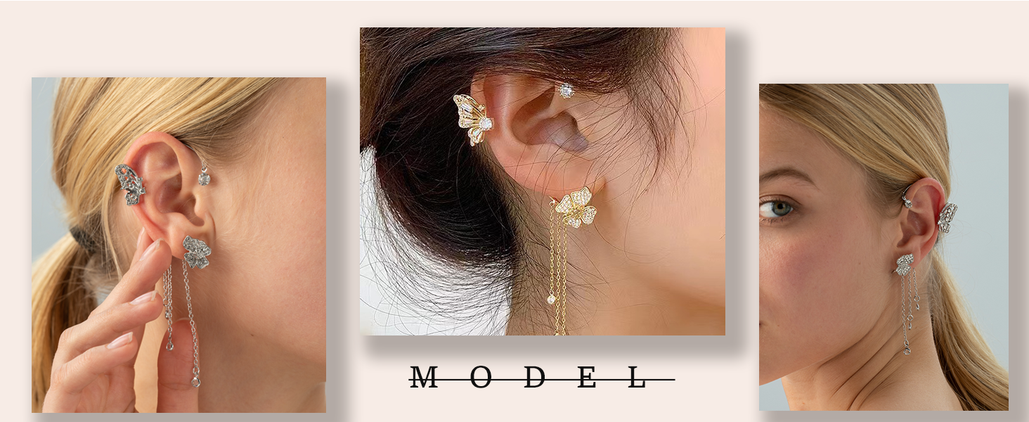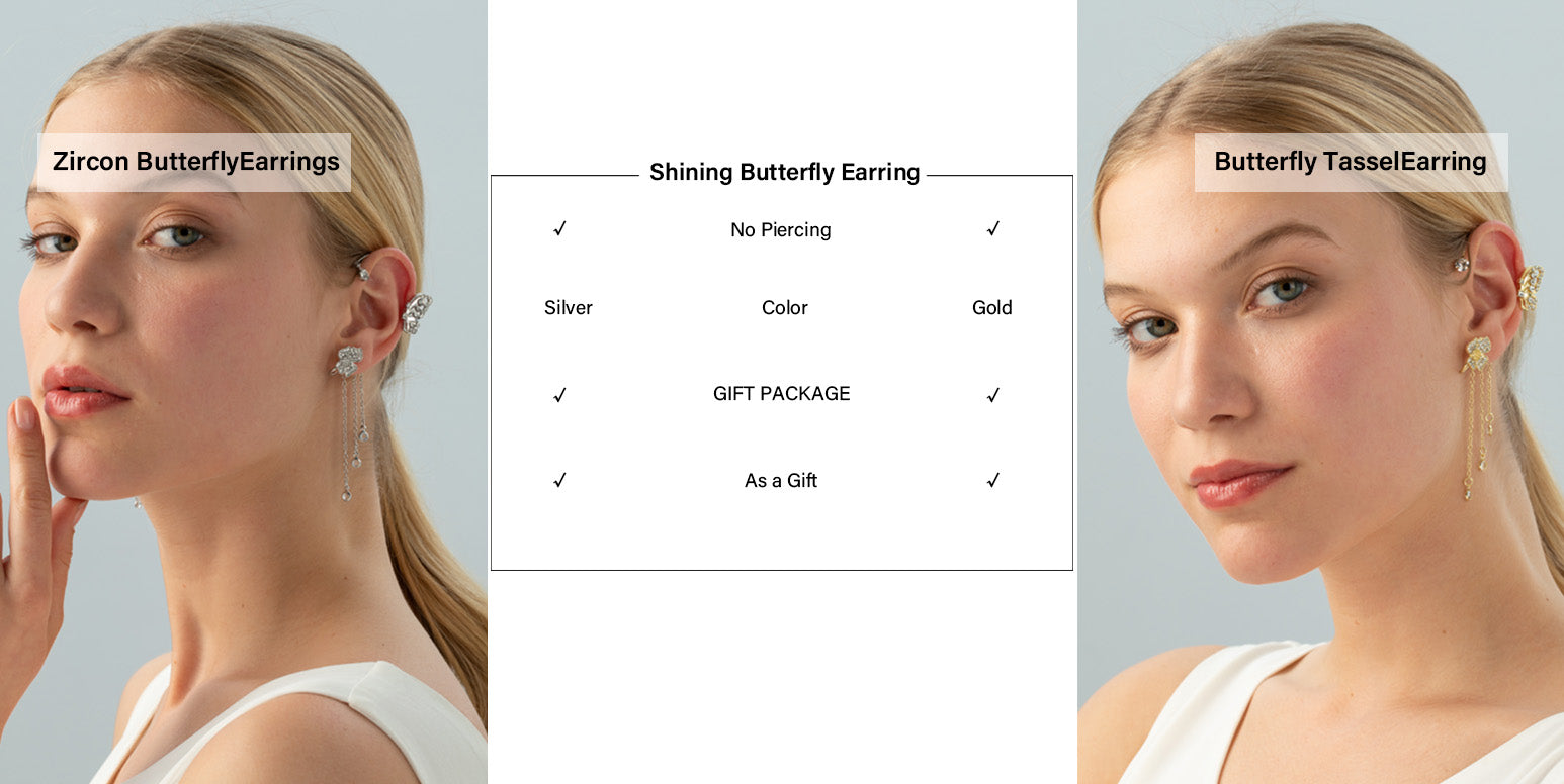 ❣Shiny Zircon Butterfly Ear Clips Material: Our shining butterfly ear cuffs are made of high-quality copper base with shiny Cubic Zirconia inlaid on them. Pro Handset Diamonds(Handcrafted by 15 years+ experience artisans instead of machine glueset). Lead-free and Nickel free, Hypoallergenic, Wear-resistant and Corrosion-resistant, Highly polished, Smooth surface, and comfortable to wear.