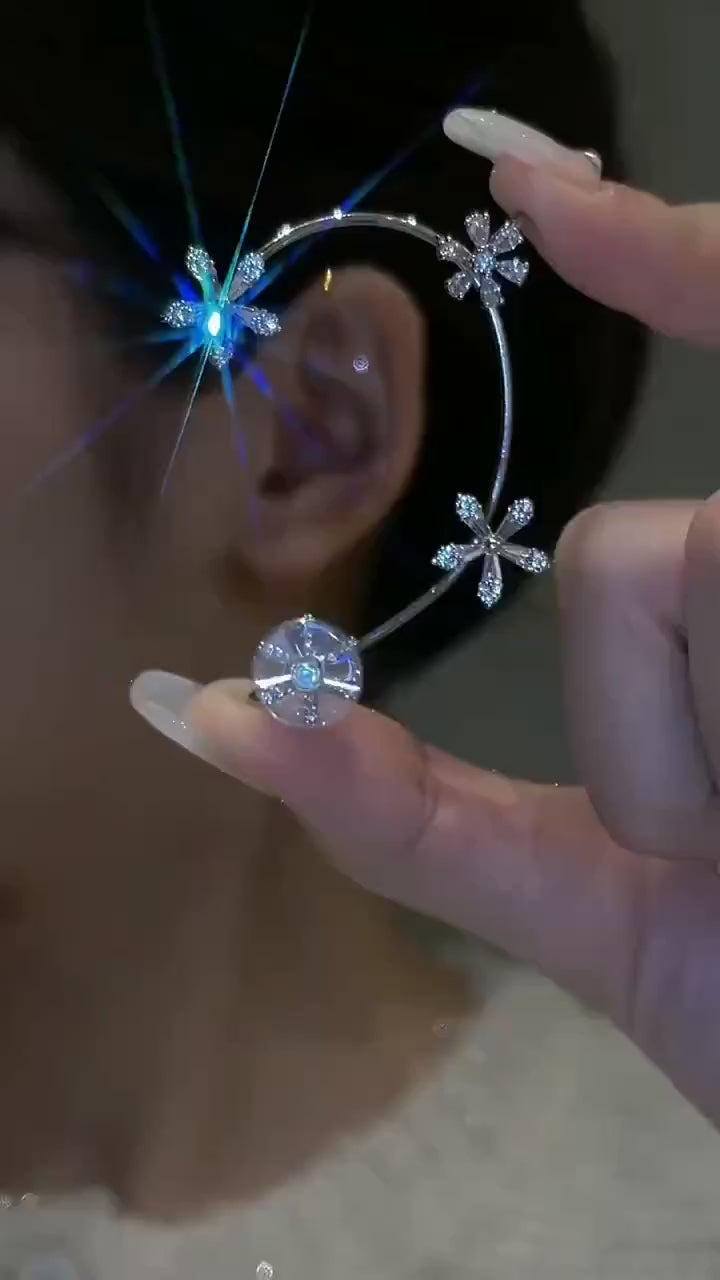 2Pcs Rotatable Snowflake Ear Cuffs Wrap Earrings for Women, Non-Pierced Earrings Jewelry