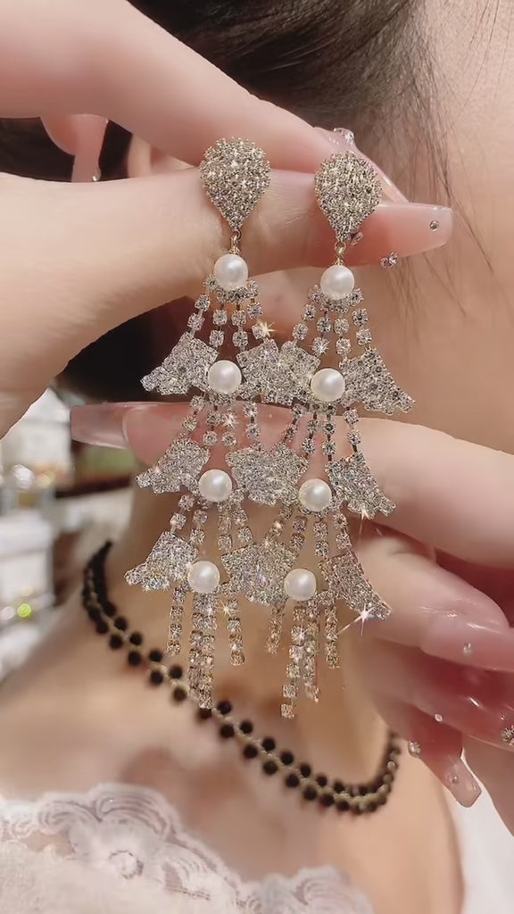 Exquisite Design: These tassel earrings feature, adorned with dazzling crystals and elegant pearls that cascade beautifully to frame your face.