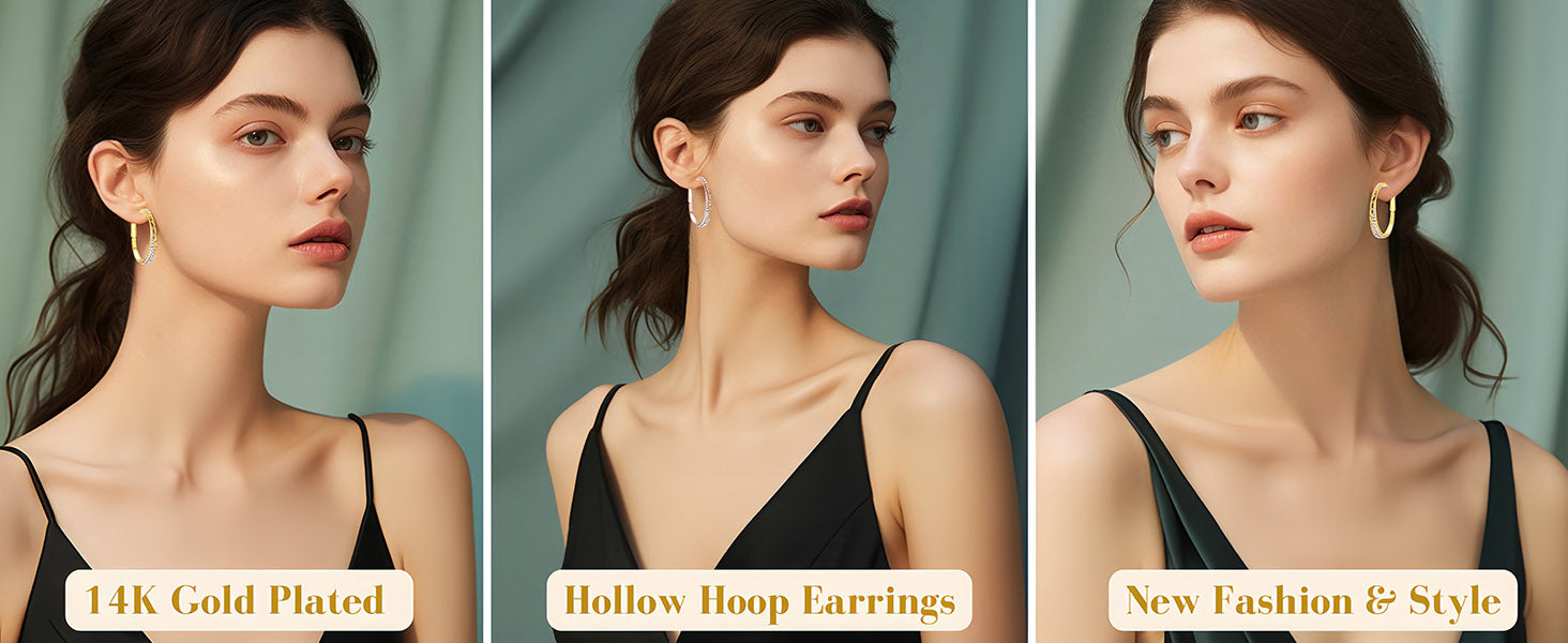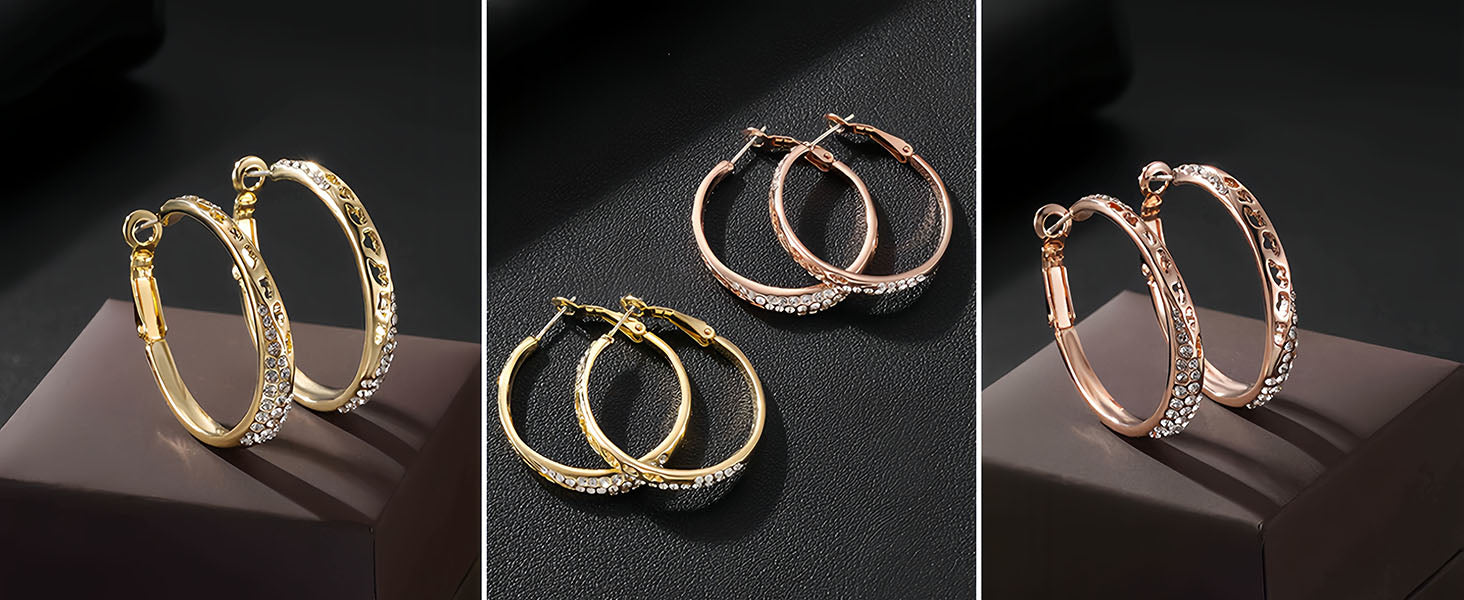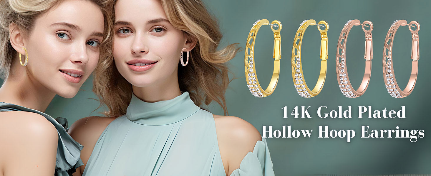 【EXCEPTIONAL CRAFTMANSHIP】—Austrian Crystal Hollow Oval Hoop Earrings are crafted with High-Quality 14K Gold-Plated Brass,Hypoallergenic,,Lead-Free and Safe for even the most sensitive ears.Well-polished surface and excellent materials has long-term color preservation,not easy to fade or rust,ensures flawless shine and durability.